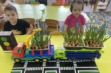 Все началось пару недель назад, когда ребята принесли луковицы, посадили их в землю и стали ухаживать за ними каждый день: поливали водой, наблюдали, как появляются первые зеленые перышки... А теперь настал тот самый радостный миг, когда весь труд окупился сполна!