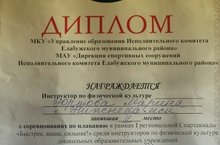 Сегодня команда наших педагогов 12.10.2017 на базе ДОУ г. Елабуга, принимала участие в региональной спартакиаде «Быстрее, выше, сильнее!» среди инструкторов по физической культуре муниципальных дошкольных образовательных учреждений. Наш инструктор по физической культуре Юртова Марина Вячеславовна заняла II место в личном первенстве по плаванию. Поздравляем!!!