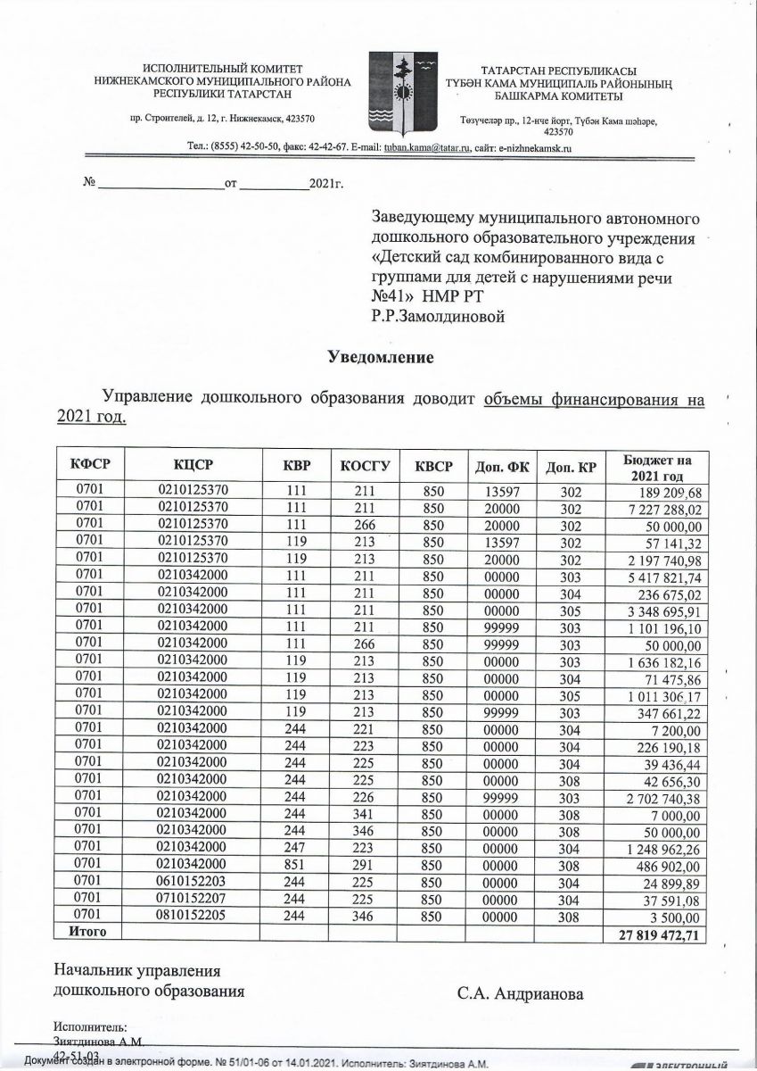 ОТЧЕТ о деятельности МАДОУ № 41 НМР РТ за 2021 г.
