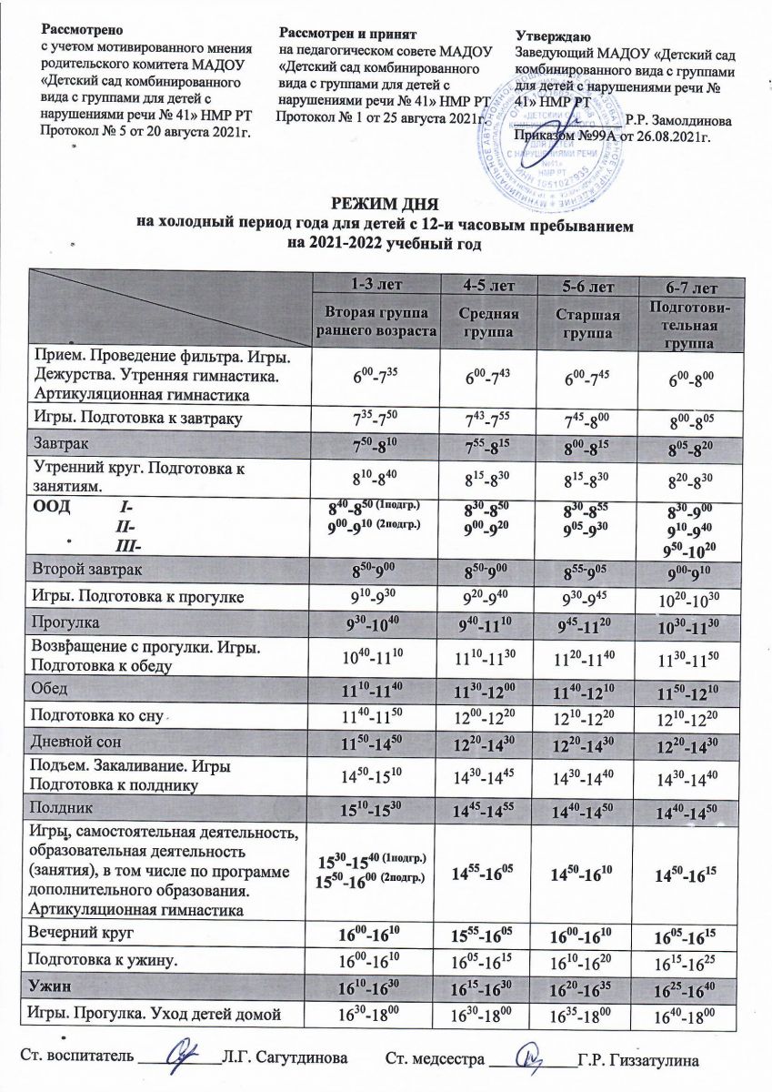 Режим дня на 2021-2022 учебный год