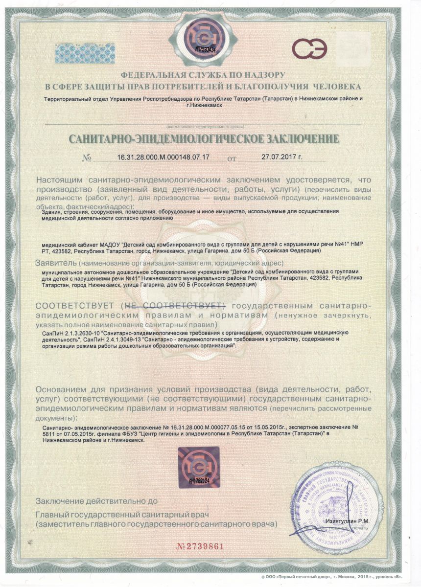 Санитарно-эпидемиологическое заключение (образовательная деятельность)