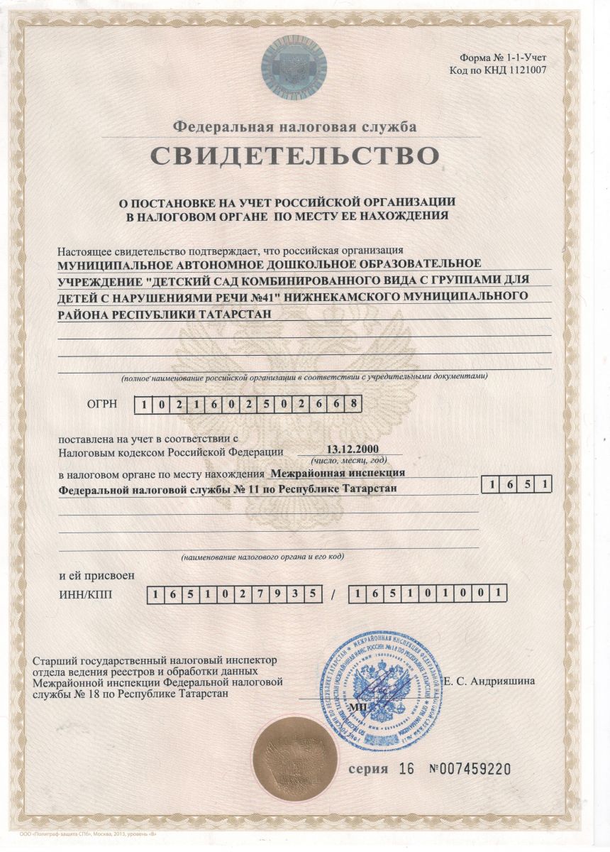 | Короткое название: | МАДОУ "Детский сад комбинированного вида с группами для детей с нарушениями речи №41" НМР РТ |
