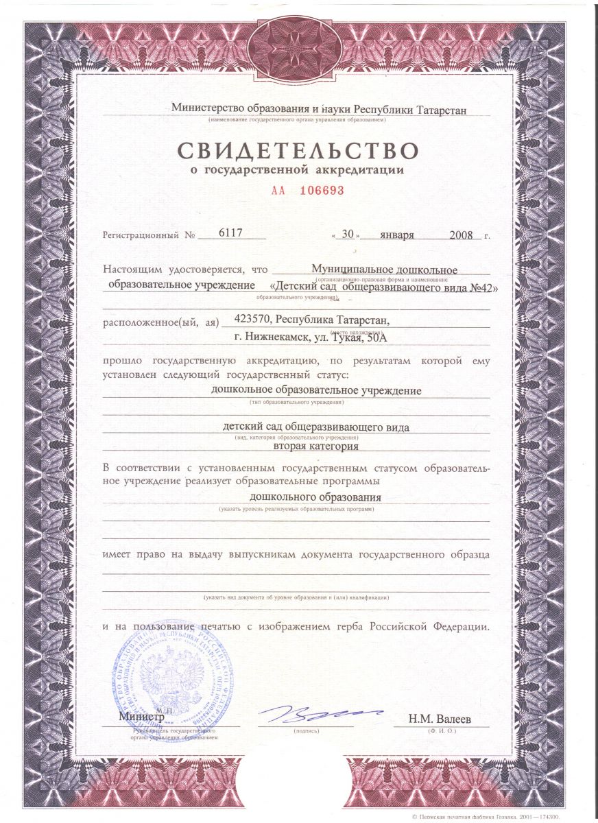 | Короткое название: | МАДОУ «Детский сад комбинированного вида №42» НМР РТ |