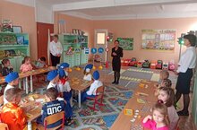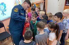 Командир отделения.Валентин Витальевич рассказал детям о работе пожарных, с какими трудностями сталкивается пожарный, какая у них спецодежда, о новых технологиях и как пожарные узнают о пожаре и тушат его. Показал огнетушитель, рассказал как им пользоваться в случае пожара. Познакомил детей с правилами безопасности и как вести себя, если начался пожар. И в конце провёл викторину.