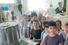 С пожеланиями здоровья и благополучия дети подарили кухонным работникам подарки сделанные своими руками. -