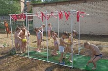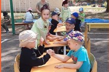 Дети вместе с родителями участвовали в шуточных эстафетах и весёлых конкурсах! На скорость поедали арбуз, выжимали из него сок, проявили себя в амплуа дизайнера
