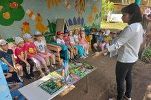 В гостях у детей старшей группы были работники детской библиотеки N7. Они провели интересное мероприятие с детьми и познакомили их со сказкой С. Рунге "Обезьяна и Черепаха", о проказнице обезьянке, которая хотела подшутить над черепахой, но получила за это урок, как не нужно делать.