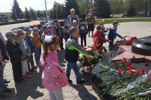 Сегодня воспитанники старшей группы вместе с воспитателями возложили цветы к монументу Победы.