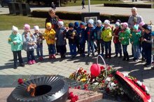 Сегодня дети старший группы после тематической беседы , посвященной 9 мая, посетили монумент Победы, где возложили цветы.