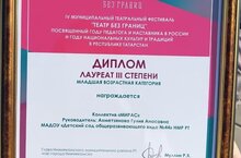 26 марта, в преддверии Всемирного дня театра, на сцене театрального комплекса "Джалиль" состоялась торжественная церемония подведения итогов муниципального театрального фестиваля-конкурса "Театр без границ!". И Уурраа! Мы стали Лауреатами 3 степени