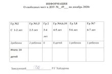 Информация о свободных местах в ДОУ №49 на декабрь 2020 год 04.12.2020