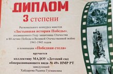 Заведующий нашего детского сада поделилась опытом работы и награждена Дипломом победителя 1 – место Республиканском конкурсе «Культура –наше достояние» «Мәдәният – безнең байлыгыбыз» в номинации Творческая мастерская. Тема: “Вакыт ага-рух кала”. Мы всем коллективом поздравляем и желаем творческих успехов!!!