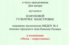 | E-Mail: | Dou4.Solnyshko.Nk@tatar.ru |