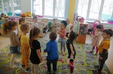 В рамках декады родного языка дети младшей и средней групп играли сегодня в татарскую национальную игру "Тюбетейка"