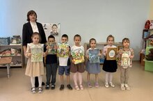 Воспитанники старшей группы сегодня знакомились с теми далёкими героическими событиями, а малыши средней и младшей группы занимались творчеством. -
