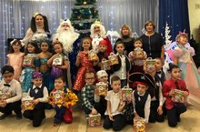 По традиции на праздник к нашим ребятам пришли Дед Мороз и Снегурочка. Ну и конечно, как же без коварной Шапокляк, хитрой Лисички, Бабы Яги, Царя, Царевны Несмеяны, Снеговика, Медведя, Снежного Гнома, которые подарили ребятам незабываемые минуты.