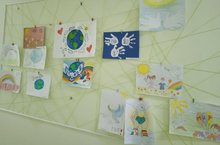 В холле детского сада организована выставка рисунков.