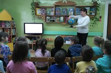 В преддверии празднования Дня России сотрудниками библиотеки был проведен познавательный час. 20 воспитанников старшего дошкольного возраста закрепили знания об истории возникновения праздника Дня России, о главных символах – флаге, гербе, гимне. Ребята показали хорошие знания, ответив на вопросы викторины. Далее воспитанникам была показана серия мультфильмов о регионах России. Детям была представлена выставка книг о России, об истории страны. В завершении дети подарили сотрудникам библиотеки бутоньерки с триколором.