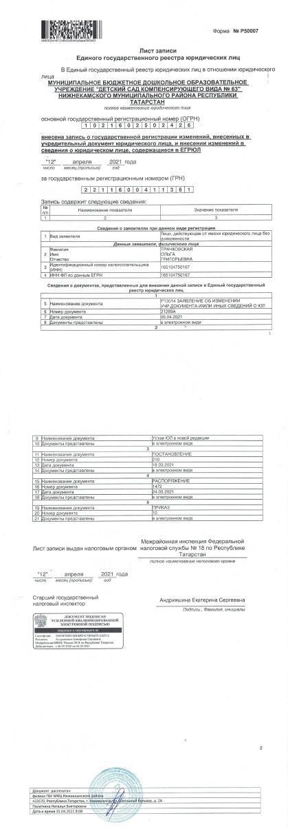Адрес официального сайта образовательной организации: https://edu.tatar.ru/nkamsk/dou63