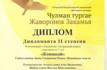 "Кояшкай" вокаль ансамбле Яр Чаллы шәһәрендә уздырылган конкурста катнашып 2 нче дәрәҗә дипломга лаек булдылар . Җитәкчеләре: Асхадуллина А.В. һәм Шайдуллина Ф.Ш.