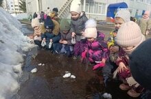 Снег постепенно превращается в воду, образуются лужи и куда-то исчезает вода. Педагоги вместе с детьми разбирались какие изменения происходят весной и почему.Особенный восторг был у ребят, когда они увидели божьих коровок, первых насекомых. Оказывается, насекомые просыпаются после зимней спячки, когда становится тепло.