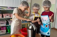 На этот вопрос искали ответ ребята старших групп. Дети выяснили, что утром полезно есть питательную кашу, поговорили о предметах личной гигиены, необходимости заниматься гимнастикой, узнали, какие витамины содержатся в овощах и фруктах. Интереснее всего было самим приготовить цитрусовый сок и наслаждаться его вкусом. Будьте здоровы!