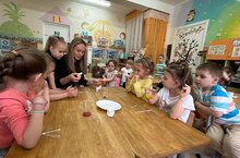 Наши мамы даже в свой отпуск находят время на интересные занятия с детьми. Так, Алина Радиковна - мама Ильмиры провела с детьми 4 группы увлекательный эксперимент. Ребята своими глазами увидели, что жиры боятся моющих средств и убегают от них. Наверное, не стоит описывать, какой восторг вызвал у ребят этот процесс! Попробуйте дома и убедитесь сами!