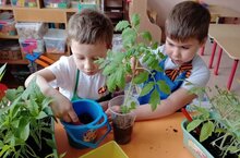 Идет подготовка рассады для высадки на огороде и на клумбах детского сада. Дети вместе с родителями ответственно подходят к делу: ухаживают, поливают, наблюдают за растениями.