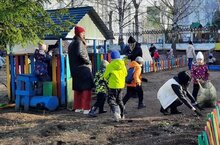 Воспитанники вместе с папами, мамами и бабушками навели порядок на участках своих групп, собрав почти 50 пакетов мусора.