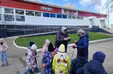 Воспитанники старшего возраста изготовили буторьерки на ленточках с триколором России. Сегодня возле магазина "Магнит" дети вручали бутоньерки с пожеланиями добра и мира.