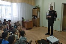 Воспитанники закрепили знания по безопасности дорожного движения, разобрали возможные ситуации на улицах нашего города. Инспектор ОП ГИБДД Романов М.А. беседовал с детьми о светоотражающих элементах. Дети правильно отвечали на поставленные вопросы.
