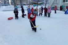 Дети старшего возраста активно участвовали в соревнованиях, эстафетах. Очень эмоционально играли в хоккей мальчики, а эстафета на ледянках способствовала проявлению взаимовыручки между детьми.