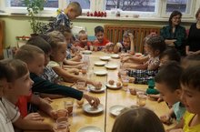 Дети старшей группы №11 вместе с героем Незнайкой закрепили знания по дорожным знакам, объясняли ситуации на дорогах города, помогли Незнайке преодолеть разные ситуации на дороге. Инспектор ГИБДД Габидуллин Р. также стал непосредственным участником развлечения. Детям были вручены фликеры, значение которых дети безошибочно объяснили инспектору.
