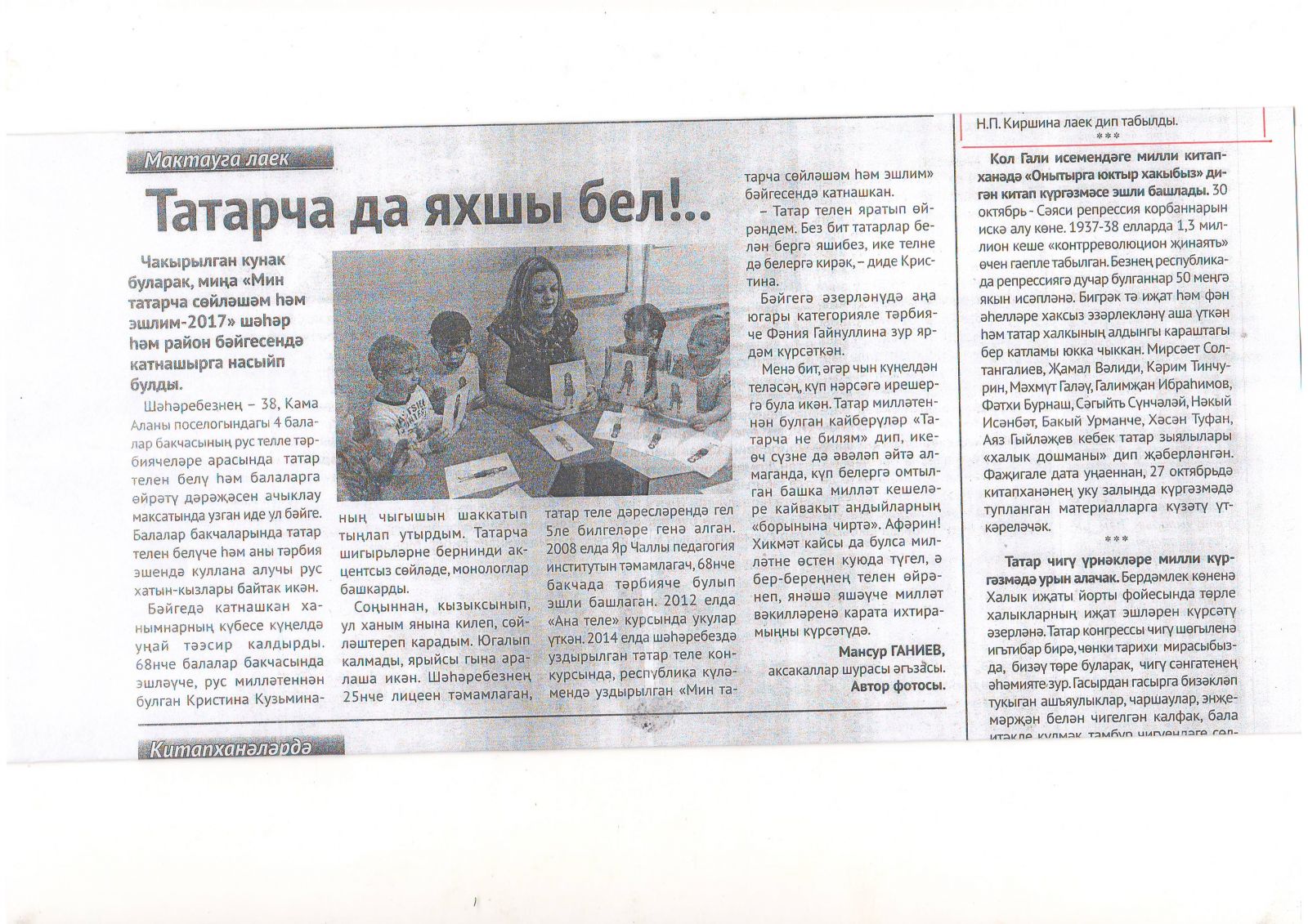 Конкурс "Я говорю и работаю на татарском-2017" газета "Туган як" 27 октября 2017 г.