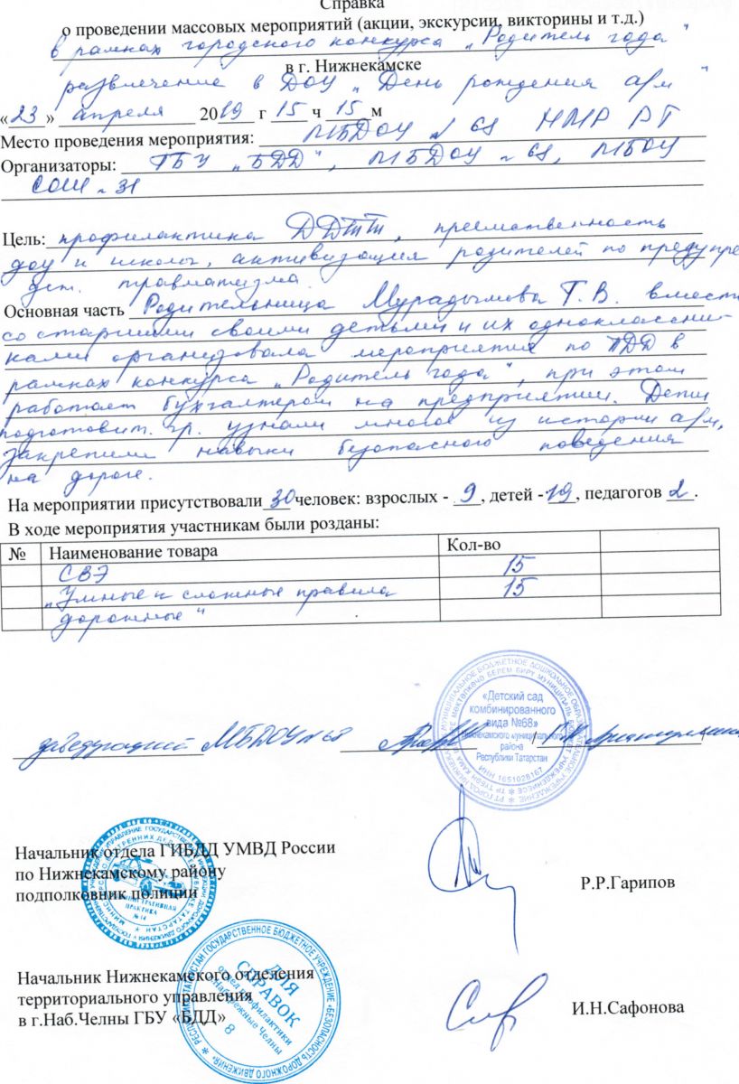 Опубликовано: 23.04.2019Родительница подготовительной к школе группе № 4, Гузель Вализановна, мама Мурадымова Даниса, выступила с инициативой организовать развлечение с детьми по обучению дошкольников правилам дорожного движения. Гузель Вализановна с участием волонтеров, которые представили себя участниками отряда Юных инспекторов движения, Светофорика, организовали игры, конкурсы, предложили для решения детям интересные задания от "Цветика-семицветика"- ребята собирали пазлы, пели песни про транспорт, рисовали логотипы автомобилей. На празднике присутствовалначальник Нижнекамского отделения территориального управления в г. Наб. Челны ГБУ «БДД» Сафонова И. Н., которая отметила значение таких мероприятий в обучении дошкольников правилам дорожного движения, вручила детям подарки - фликеры и рабочие тетради "Умные и сложные правила дорожные", Светофорик тоже присоединился к награждению - детям - будущим школьникам вручены памятки для заполнения школьного расписания.