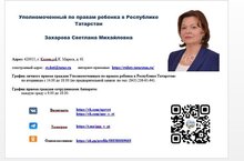 Уважаемые родители, важная информация! Представляем вам вновь назначенного уполномоченного по правам ребёнка в республике Татарстан - Захарова Светлана Михайловна!