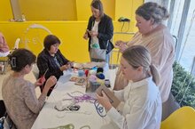 Особенным украшением праздника стали многочисленные творческие мастерские, где каждый мог проявить свою фантазию и творчество. Наш сад организовал мастер-класс по вышиванию на картоне.