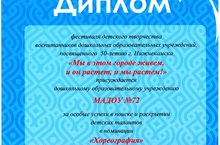 Сегодня в ДНТ прошел фестиваль детского творчества воспитанников дошкольных образовательных учреждений посвященного 50-летию г.Нижнекамска "Мы в этом городе живем, и он растет, и мы растем!". Наши воспитанники получили диплом в номинации "Хореография".