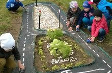 Воспитатель Агафонова Ольга Геннадьевна оборудовала на участке, с помощью родителей, транспортную площадку. Для проведения различных познавательно-игровых мероприятий по обучению детей ПДД.