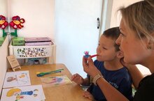 В начале учебного года учителя-логопеды нашего детского сада проводят обследование речи детей, для определения дальнейшей работы. Учитель- логопед группы 7 Зайнуллина Зульфия Наисовна во время обследования использует разнообразные приемы: артикуляционную гимнастику, рассматривание картинок, игровые упражнения!