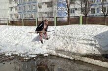 Большой дружной командой разрыхлили остатки снега на территории сада и на близлежащей площадке. -