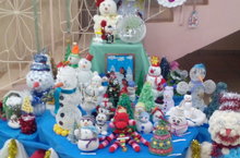 В преддверии, Нового года в нашем саду была организована выставка творческих работ воспитанников и их родителей. На выставке представлены тематические поделки. Материал, из которого выполнены работы самый разнообразный: нитки, цветная бумага, ватные диски, одноразовые стаканчики и ложки, новогодняя мишура и многое другое. Наши дети и их родители приложив максимум фантазии, творчества и выдумки, создали сказку своими руками. На выставке можно увидеть выдуманных сказочных героев: снеговики, ёлочки, обезьянка – символ года.