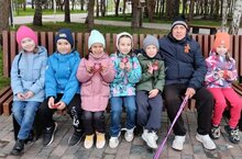 В рамках акции воспитанники детского сада организовали раздачу Георгиевских ленточек в парке «Семья».