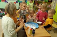 За окном долгожданная зима! Она принесла собой волшебное настроение и много- много снега. ???? А самое любимое детское развлечение - это конечно же игры в снежки, жаль, что снег не занесешь в теплое помещение, так как он тут же растает на глазах. Но ребята младшей группы №8 не стали расстраиваться, а сделали свой искусственный снег. ????