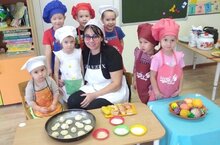 С целью расширения знаний и представлений детей о труде повара, а также воспитания положительного отношение к труду, чувства уважения к сотрудникам детского сада, воспитанники группы №5 пригласили к себе в группу повара Газизову А.Т.Аниса Талгатовна рассказала и показала детям, что нужно для того, чтобы стать хорошим поваром. Дети узнали, что повар должен быть ответственным, внимательным, выносливым, аккуратным, он должен знать рецепты приготовления разных блюд. А после дети играли в сюжетно-ролевую игру «Повар» и приготовили настоящие булочки и испекли их в духовке пищеблока детского сада. А какими вкусными и ароматными они получились! Пальчики оближешь!