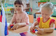 Россия федерациясенең флагы көне ел саен 22 августта билгеләп үтелә. Шул унайдан 1, 8 төркемдә мәгълүмати-иҗади эш оештырылды. Башлангыч этапта балалар белән әңгәмәләр үткәрелде, дәүләтебезнең символикасы турында китаплар укылды.