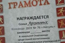 Поздравляем семью Архиповых, занявших первое место в зональной Спартакиаде среди семей воспитанников дошкольных образовательных учреждений РТ.