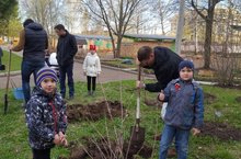 В нашем детском саду есть традиция. Каждый год выпускные группы детей вместе с родителями сажают фруктовые деревья. В этом году группа №5 посадили вишневый сад.