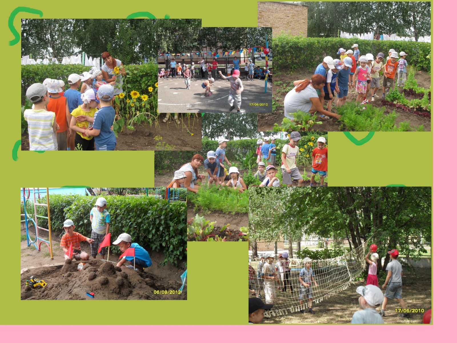 Велико воспитательно-оздоровительное значение ухода и озеленения групповых участков, садового и лесного участка детского сада. Многообразие форм, яркая гамма цветов, кустарников, деревьев вызывают радостные впечатления, создают комфортные условия и благоприятный климат. Особое внимание в детском саду уделяется воспитанию трудолюбия у детей. Педагоги привлекают воспитанников к участию в рыхлении почвы, прополке , окучивании, поливе грядок и клумб.