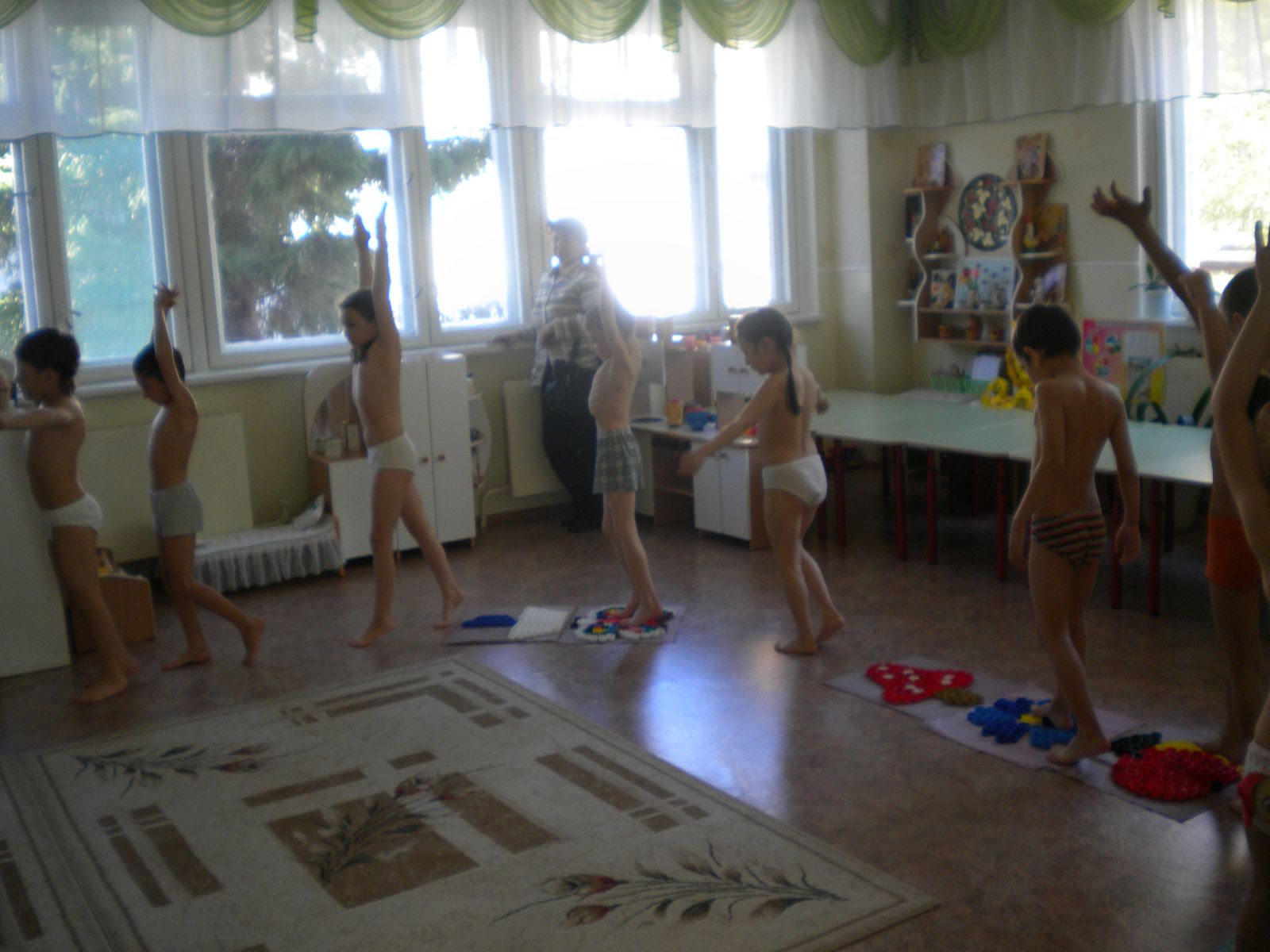 Работа строится на основе Программы «Будь здоров, малыш!», разработанная коллективом детского сада на пять лет, целью которой являются оздоровление детей, повышение качества медико-социальных условий развития каждого малыша. В своей работе коллектив нашего детского сада применяет адаптированный вариант методик спецзакаливания детей А. Уманской и К. Динейки.